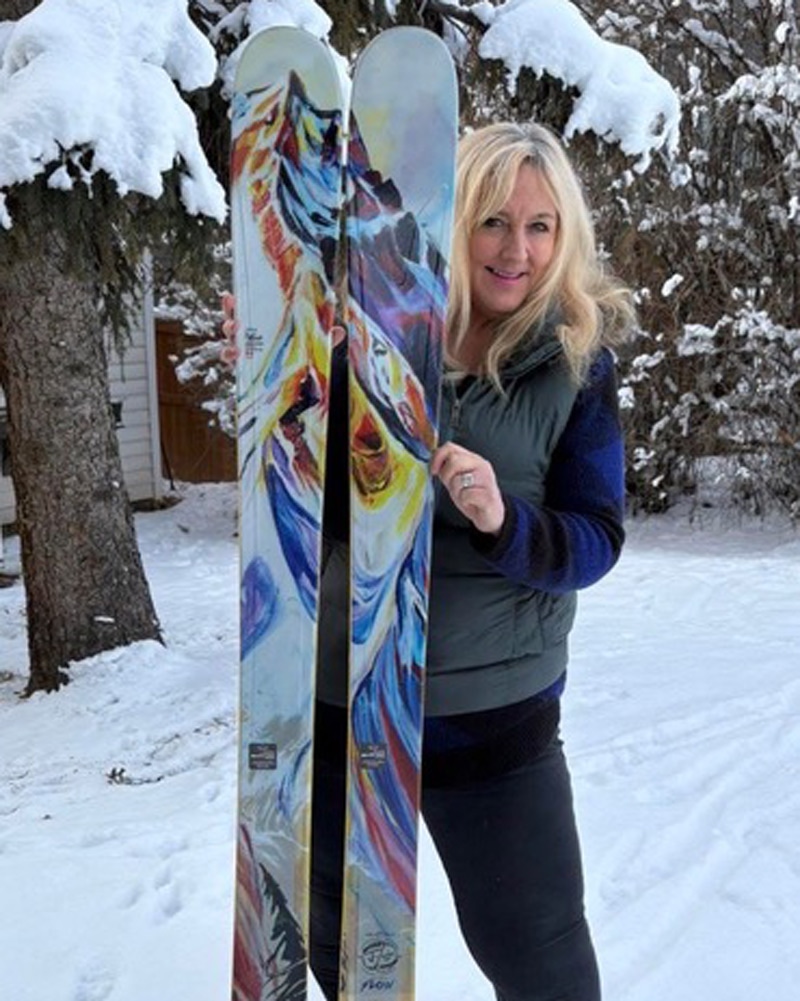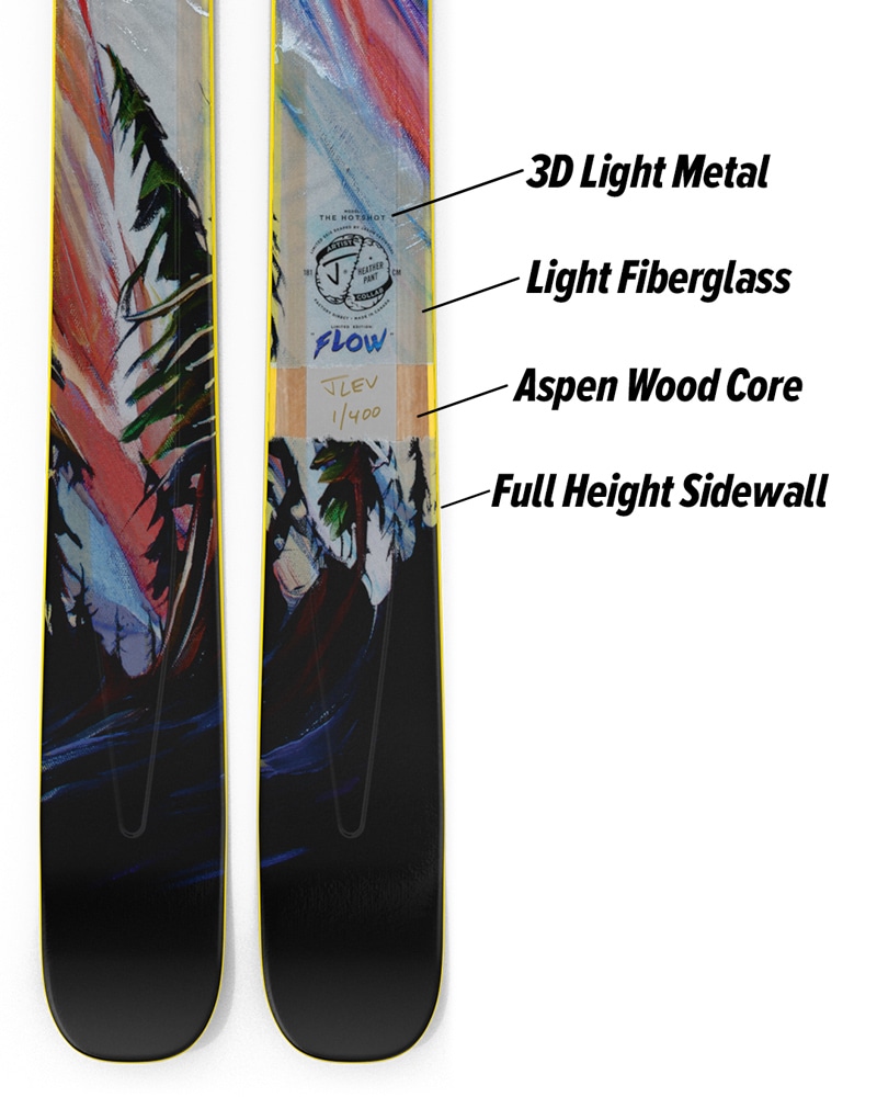 J skis ホットショット「フロウ」は、カナダ・カルガリー在住のアーティスト「ヘザー・パント」とコラボした作品です。
