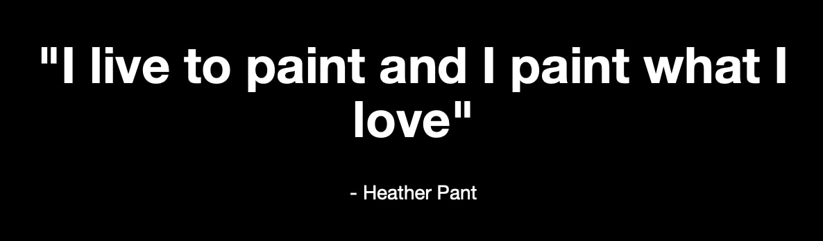 ヘザーの作品は縦長の構図が多く、これがスキーという縦に長いキャンバスと相性抜群。