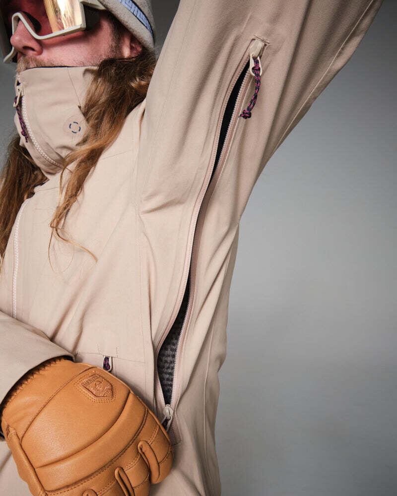 20,000gr/m2の高い数値とよく考慮されたベンチレーションにより、スキー場はもちろんバックカントリーでも信頼できる通気性を誇ります。