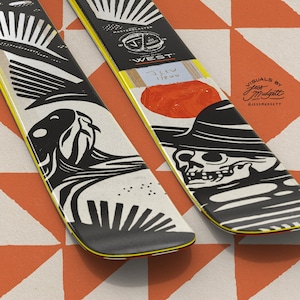 友人の紹介でミステリーメイドのJess Mudgett(ジェス・マジェット)と繋がり、彼の描く西部風アートがスキーにぴったりだと直感しました。