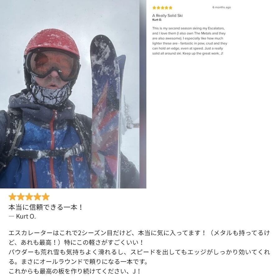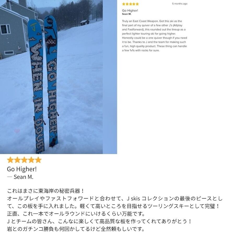 「スキー業界で働いてます」「前にJ skis買ったことあるんだけど…」などなど。