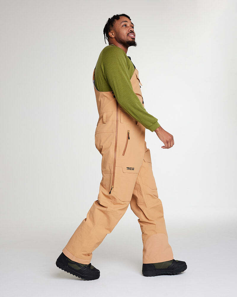 TREWthビブは全体的にリラックスフィットで設計されており、インナーの重ね着に十分な余裕を持たせ、ダフィーなどの動きで脚をしっかりと伸ばせる快適さを提供します。