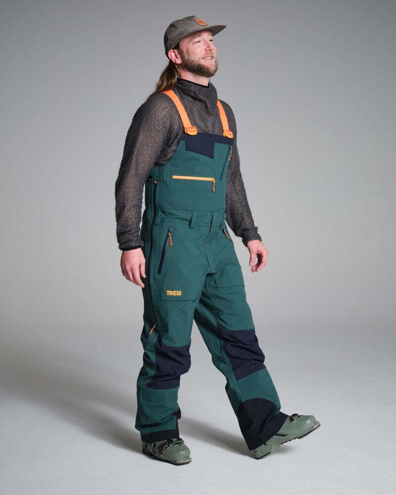 TREWのオリジナルのモダンフリーライドビブは、さまざまな状況やレイヤリングに対応できるよう、全体的にゆったりとしたフィット感でデザインされています。