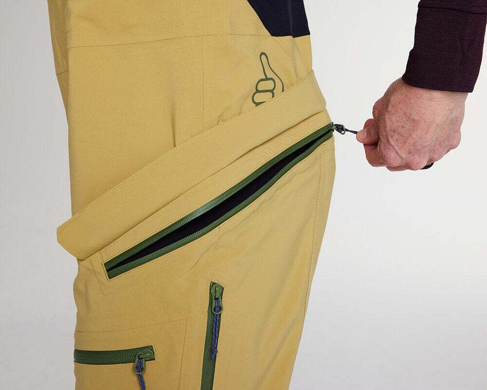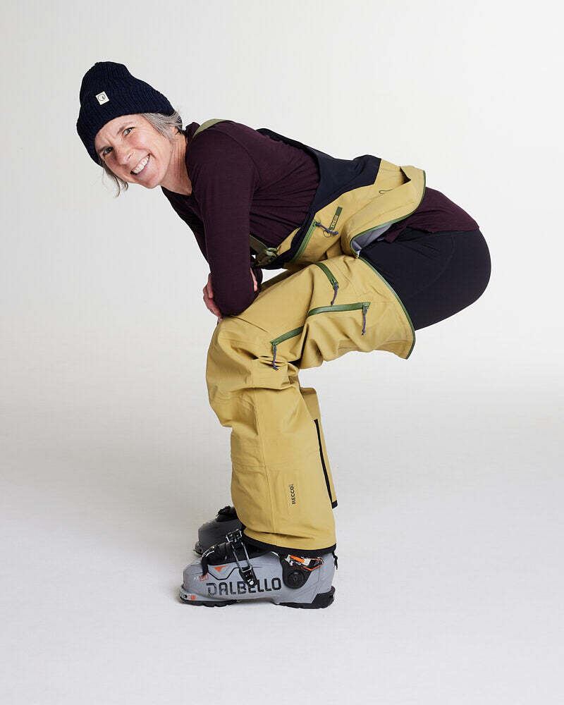 Capow Bibは山でのアクティビティ中にインナーを重ね着しやすく、自由な動きを妨げないよう、リラックスフィットに設計されています。