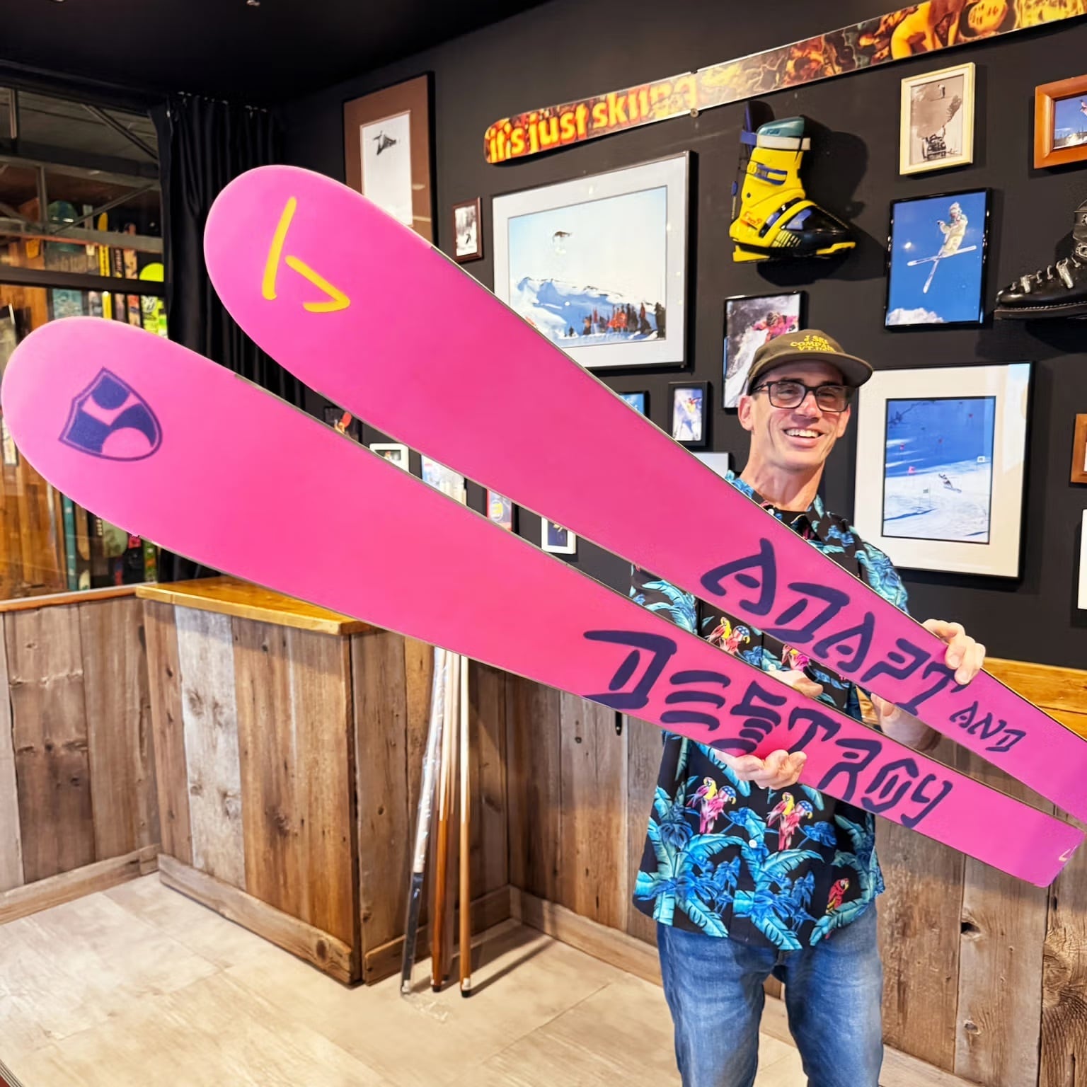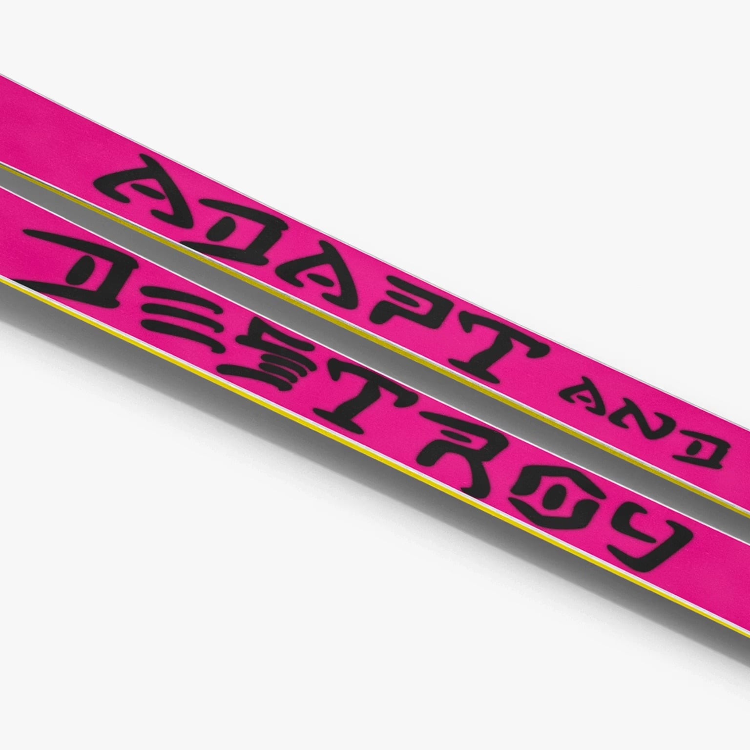 グラフィックに込めた「ADAPT AND DESTROY」。スキーのベースグラフィックには、80年代のスケートカルチャーの雰囲気を取り入れました。「Skate and Destroy」の反骨精神を受け継ぎながら、High Fivesの力強いメッセージ ”ADAPT AND DESTROY(適応して打ち砕け)” を大胆に表現しています。