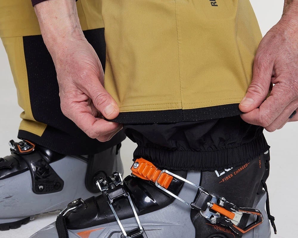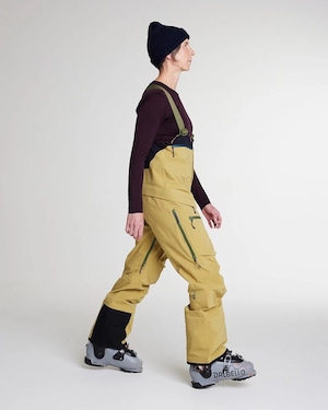Capowビブは、リラックスフィットを基本にしながらも脚のラインはよりスリムなデザインで、山でのアクティビティ時にインナーを重ね着しやすく、自由な動きが可能です。