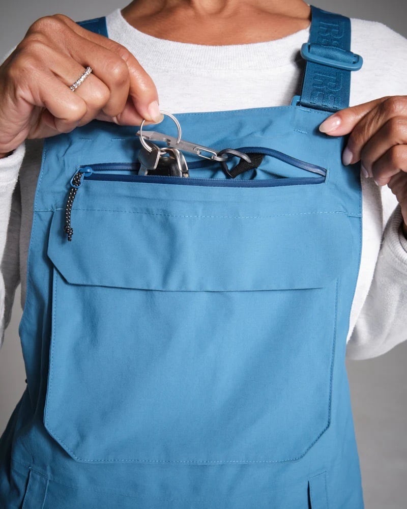 アストリア・ビブは、インナーを重ねやすく、山で自由に動けるように、ゆったりめのリラックスフィットで設計されています。