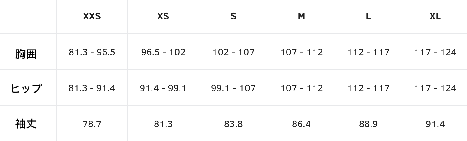 サイズ選びのヒントやモデル着用情報は、下のセクションをご確認ください。