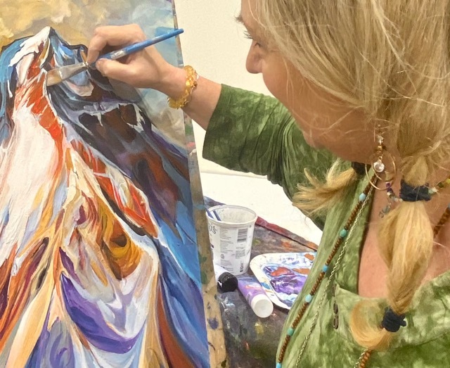 ヘザーはアクリルを中心に、力強く鮮やかな色彩と独自の印象派的表現でカナディアンロッキーのエネルギーを描き続けています。