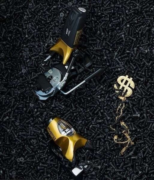 個性的なJ skisのグラフィックに、相性抜群のメタリックカラーのビンディング。