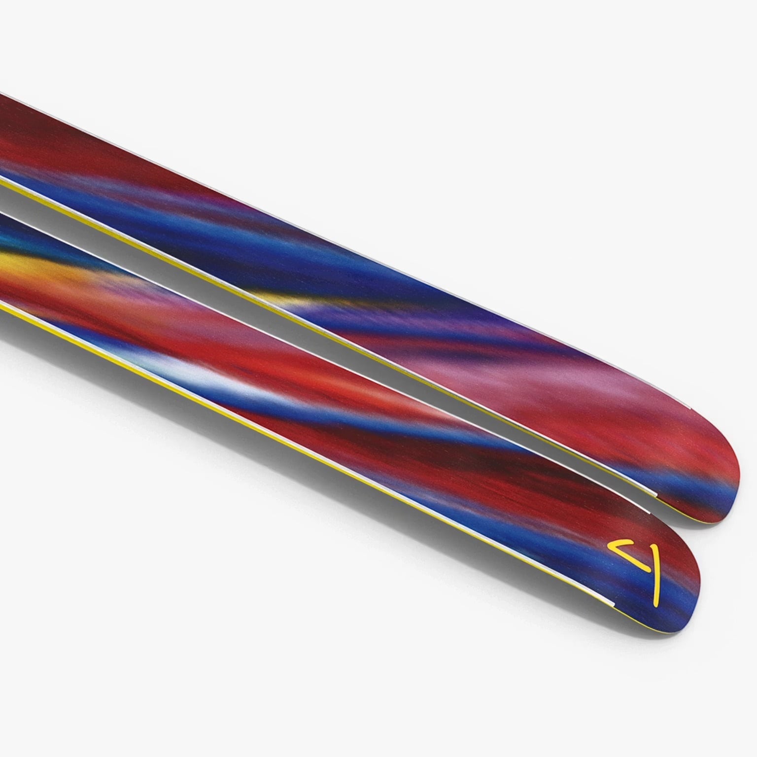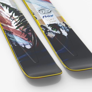 さらに、Jの伝説的モデル、LineスキーのProphet(プロフェット)からインスピレーションを受け、トップには3Dライトメタルラミネートが見えるデザイン、そしてアイコン的なDork Fork形状のティップを採用。