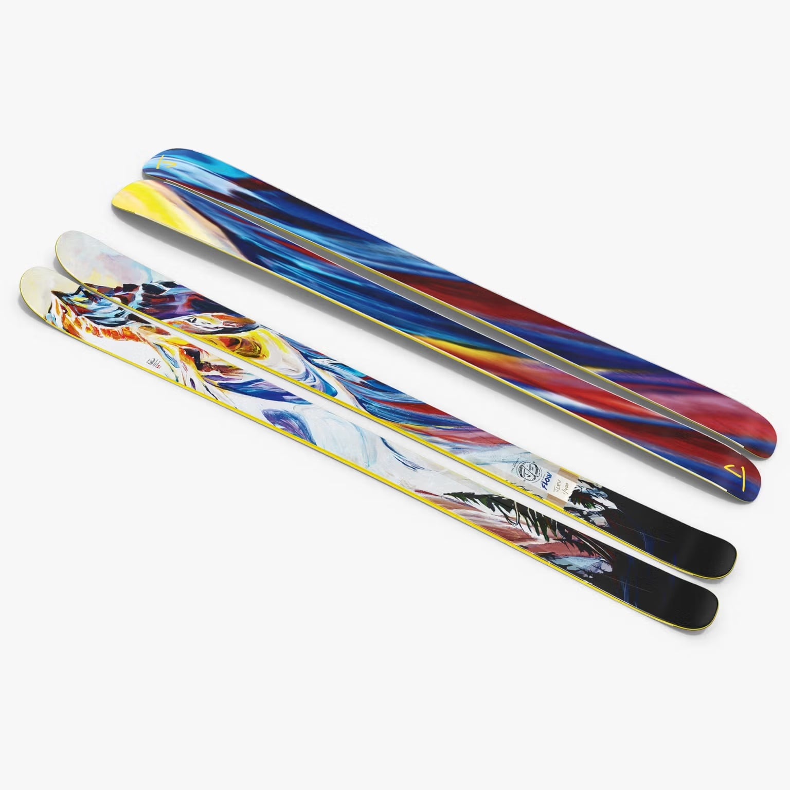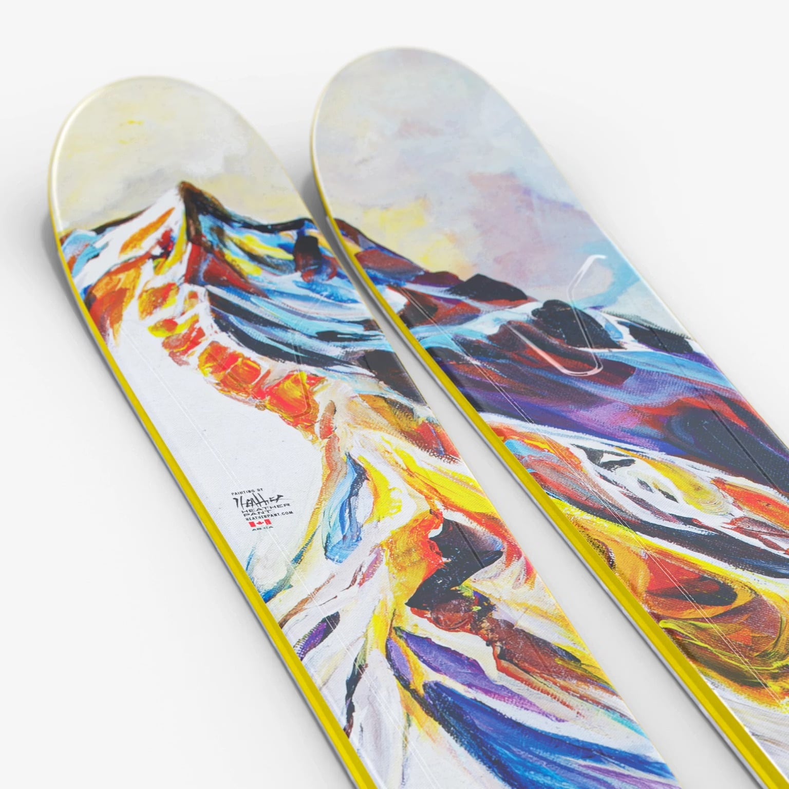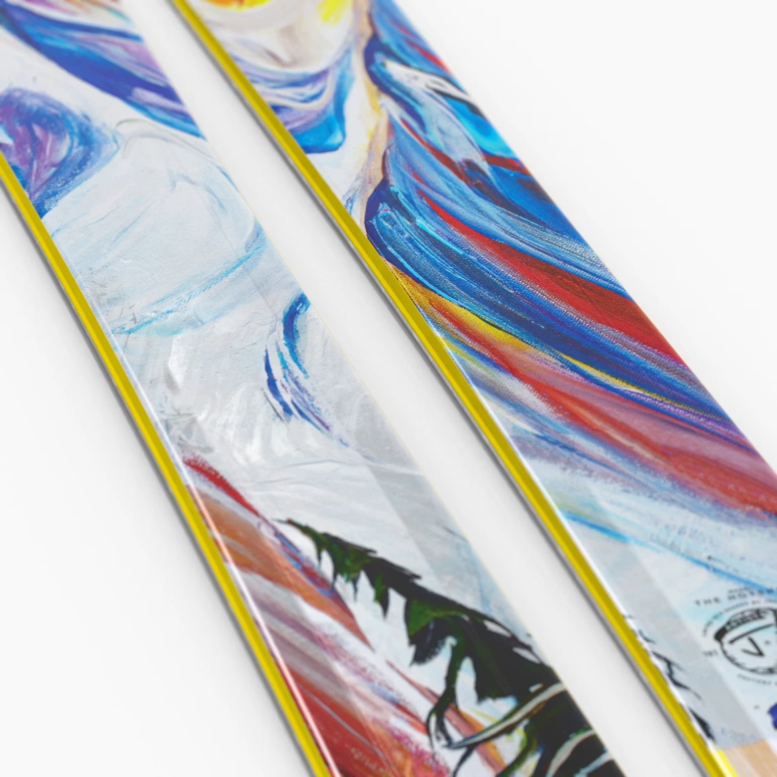 さらに、絵の一部に透明感のあるセクションを入れることで、スキー内部のコア材・メタル・ファイバーが透けて見えるという特別仕様に。