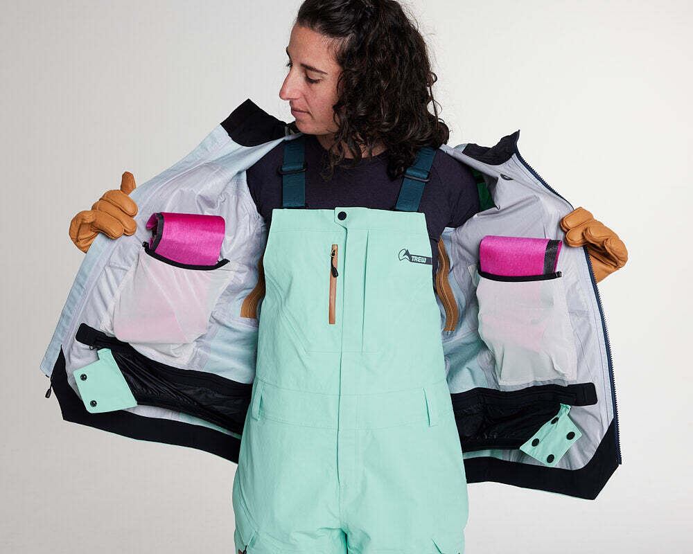 女性用のステラジャケットとチャリオットビブは10年以上の改良とさまざまな気候でのテストを経て、完成したアイテムたちです。一本でどんなシーンにも対応できるジャケットやビブが欲しいなら、これがピッタリ。耐久性が高く、通気性も抜群なPNWクラシック生地(20k/20k)が、氷点下の森や急な登りでも活躍します。